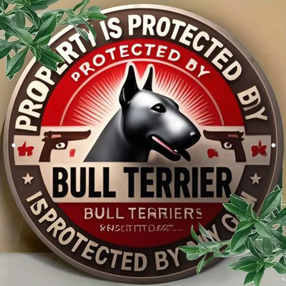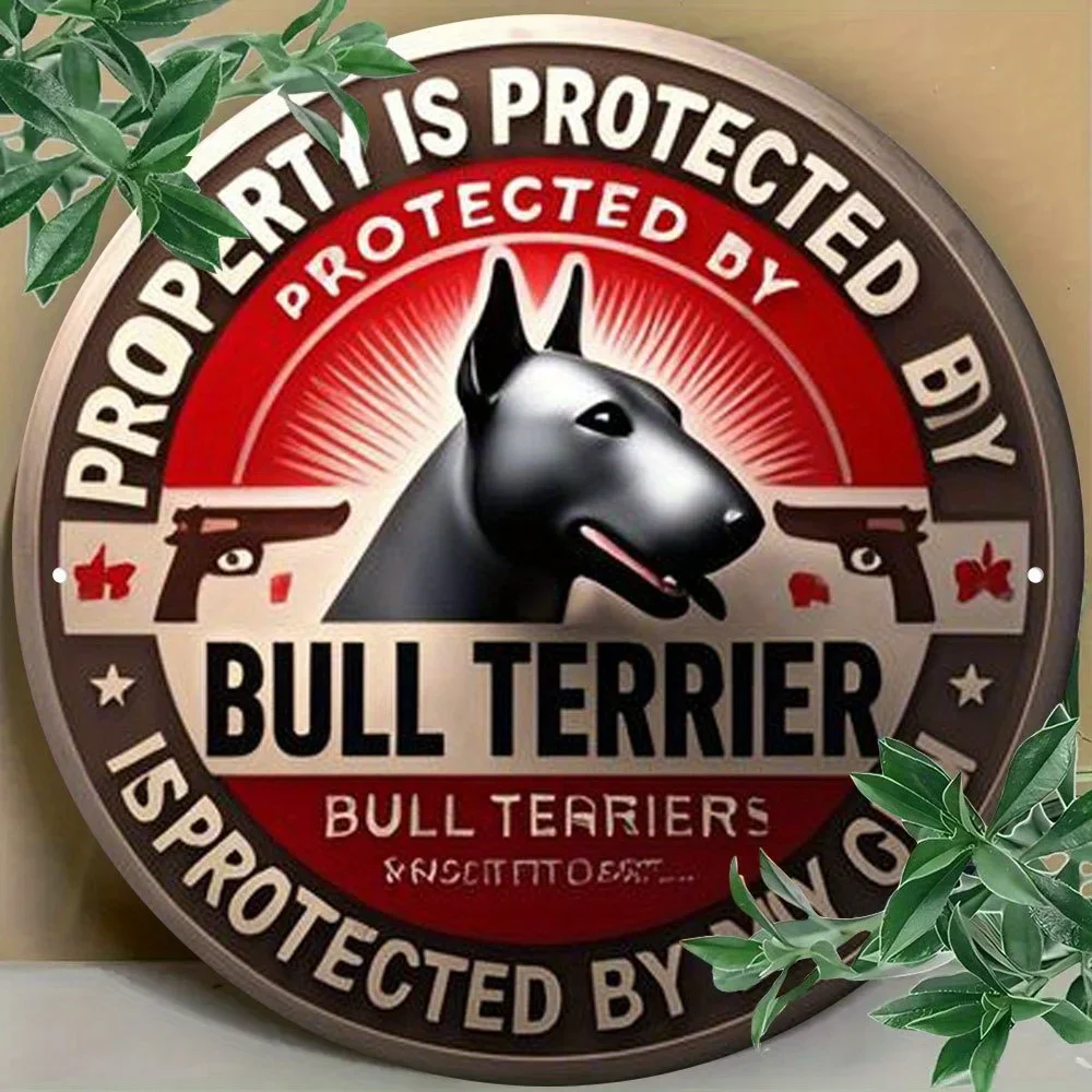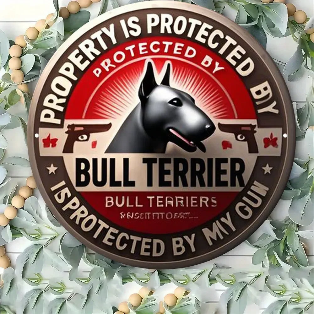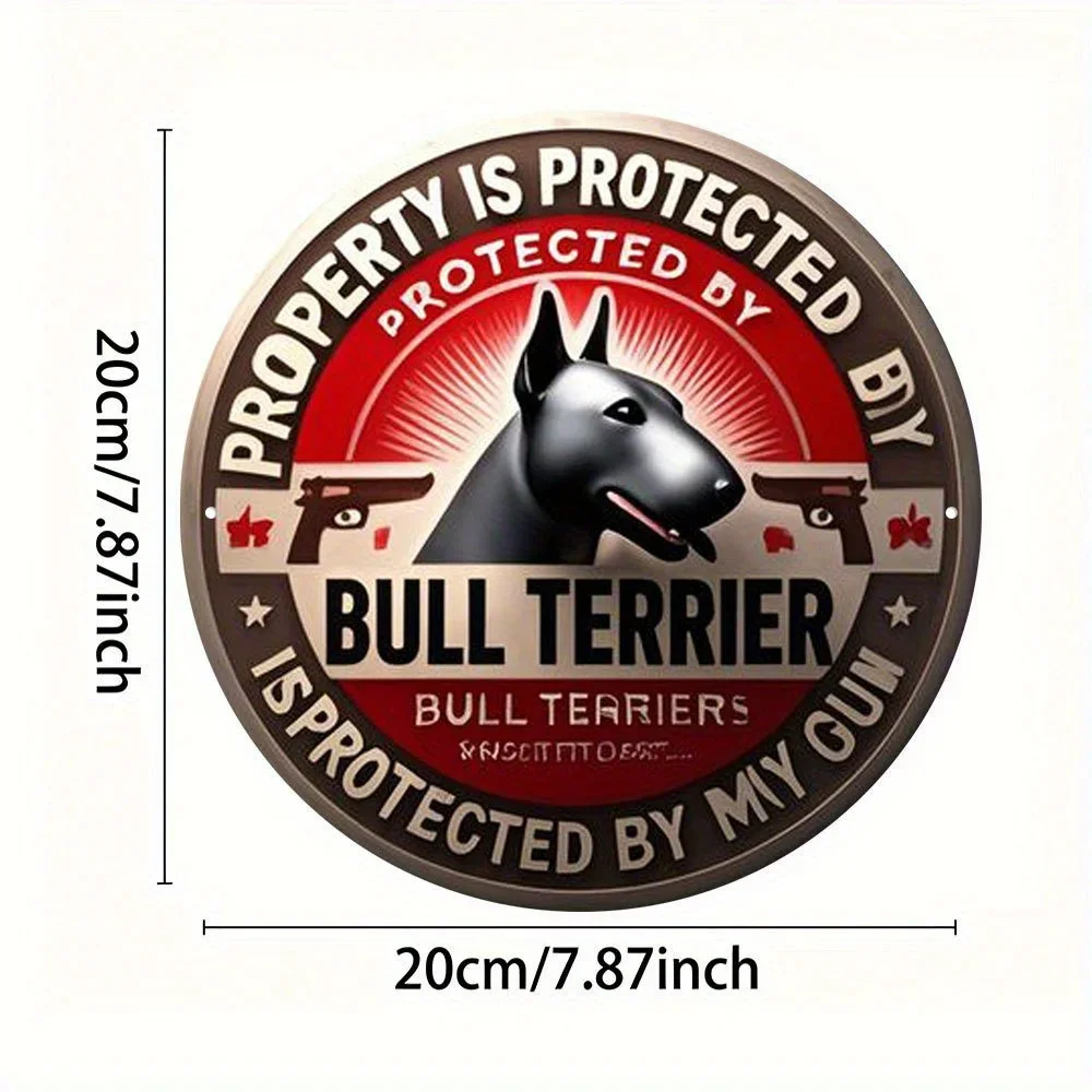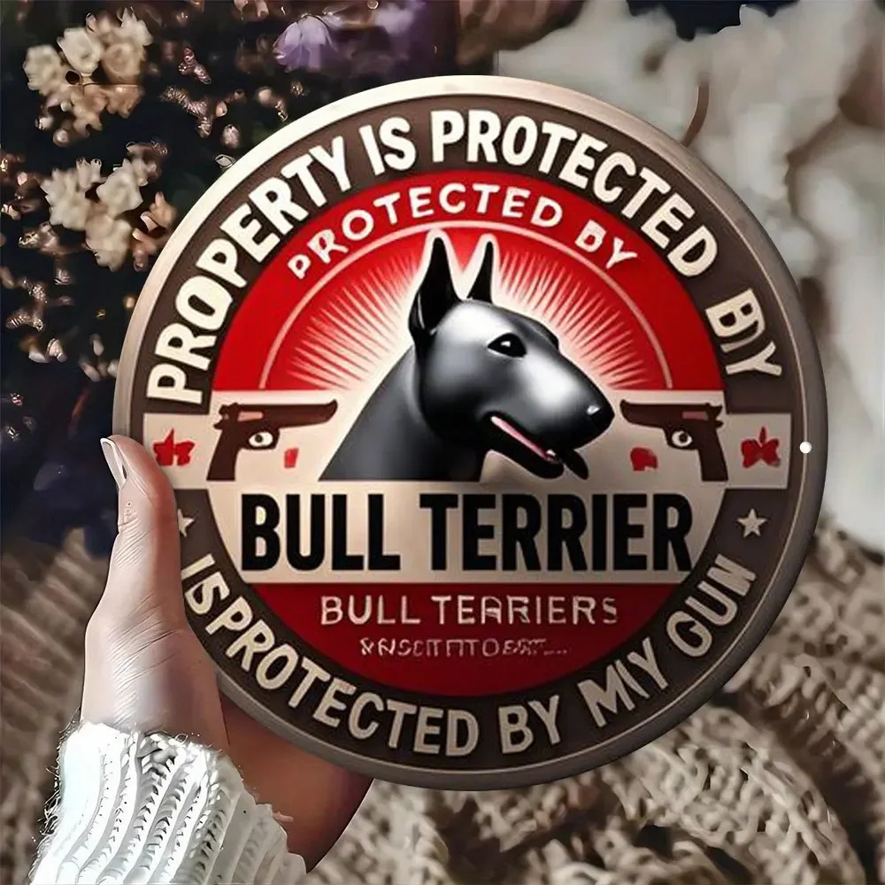 Room Decor 1pc Bull Terrier Protects Property Round Metal Aluminum Sign, Vintage Digital Direct Print Art Decorative